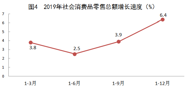 全年社会消费品零售总额比上年增长6.4%。其中,限额以上企业消费品零售额增长1.2%。按消费形态统计,商品零售增长1.2%;餐饮收入增长2.3%。