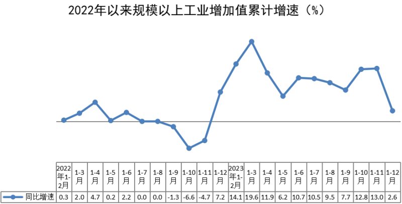 2023年,全区规模以上工业增加值同比增长2.6%,比前三季度回落5.1个百分点。