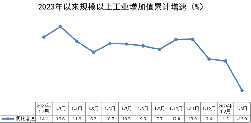 一季度,全区规模以上工业增加值同比下降13.9%,比上年同期回落33.5个百分点。