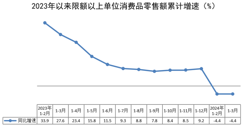 一季度,全区社会消费品零售总额130.48亿元,同比下降1.1%,比上年同期回落18.6个百分点。其中,限额以上单位消费品零售额52.68亿元,同比下降4.4%,比上年同期回落32.0个百分点。按消费形态分,商品零售同比下降5.6%,餐饮收入同比增长5.2%。