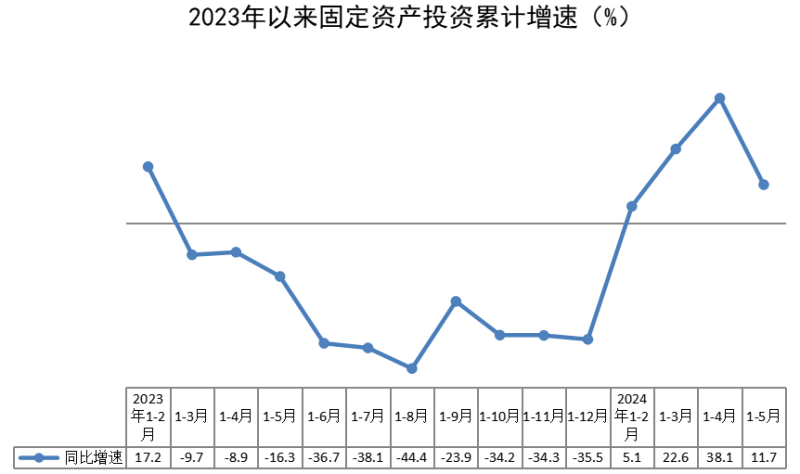 1-5月,全区固定资产投资同比增长11.7%,比1-4月回落26.4个百分点。其中,民间投资同比增长55.3%。