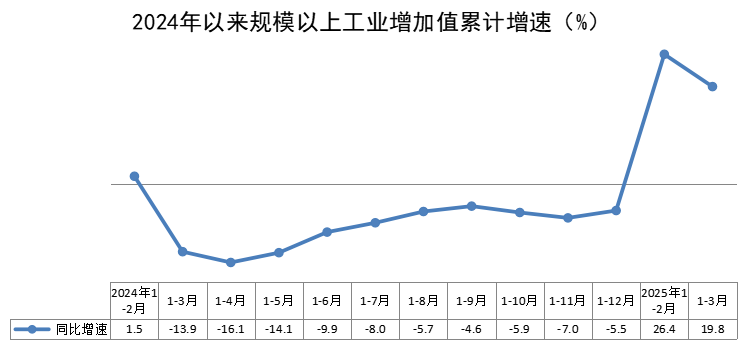 一季度,全区规模以上工业增加值同比增长19.8%,比上年同期提高33.7个百分点。
