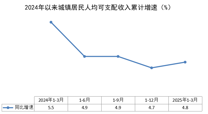 一季度,全区城镇居民人均可支配收入16273元,名义增速同比增长4.8%,比上年同期回落0.7个百分点。
