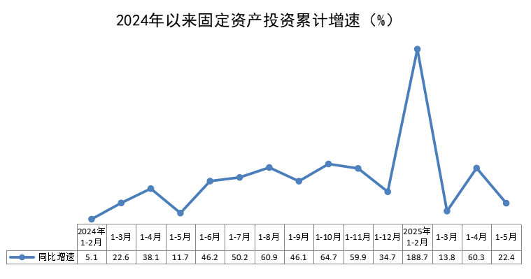 1-5月,全区固定资产投资同比增长22.4%,比上年同期提高10.7个百分点。其中,民间投资同比增长91.0%。