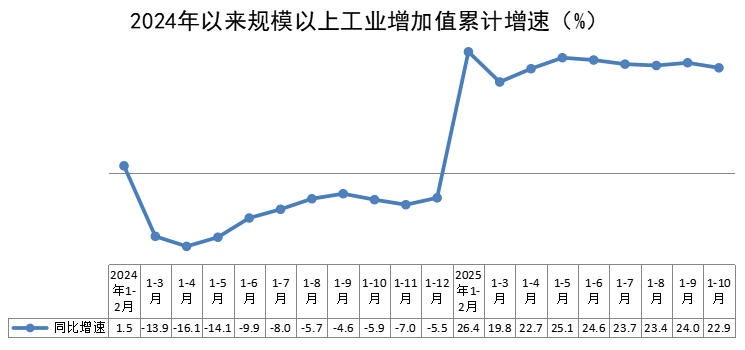 1-10月,全区规模以上工业增加值同比增长22.9%,比上年同期回升28.8个百分点。