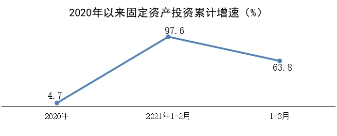 一季度,全区固定资产投资同比增长63.8%,比2019年同期增长42.3%,两年平均增长19.3%。其中,民间投资同比增长93.0%。