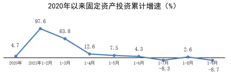 前三季度,全区固定资产投资同比下降8.7%,比上半年回落13个百分点;两年平均增长2.7%,比上半年回落7个百分点。其中,民间投资同比下降8.8%,比上半年回落10.9个百分点。