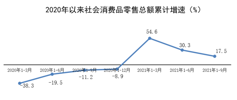前三季度,全区社会消费品零售总额450.66亿元,同比增长17.5%,比上半年回落12.8个百分点;两年平均增长2.1%,比上半年回落0.3个百分点。其中,限上消费品零售额186.13亿元,同比增长12.9%,比上半年回落21.3个百分点;两年平均下降0.4%,比上半年回落4.2个百分点。从消费形态看,商品零售同比增长9.9%;餐饮收入同比增长49.3%。