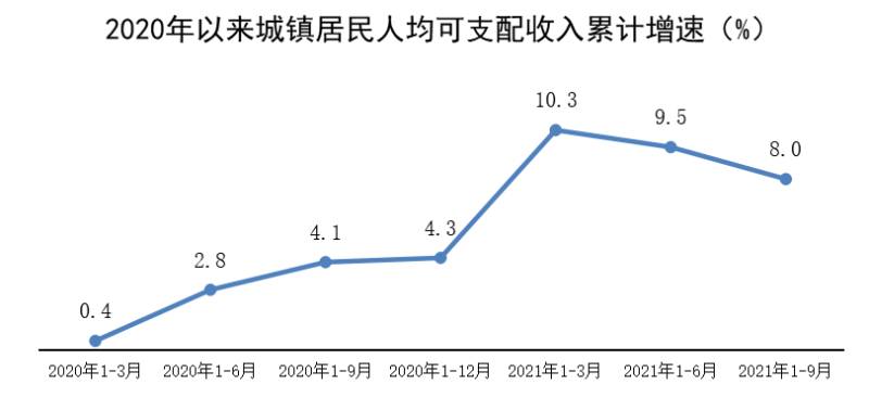 前三季度,全区城镇居民人均可支配收入40496元,同比名义增长8.0%,比上半年回落1.5个百分点;两年平均增长6.0%,比上半年回落0.1个百分点。