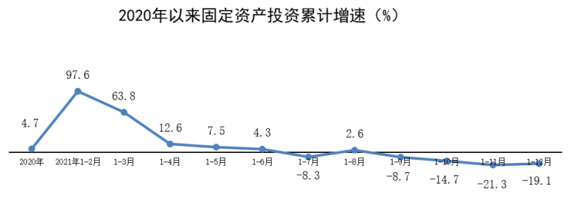 2021年,全区固定资产投资同比下降19.1%,比上年回落23.8个百分点;两年平均下降8.0%。其中,民间投资同比下降24.7%。