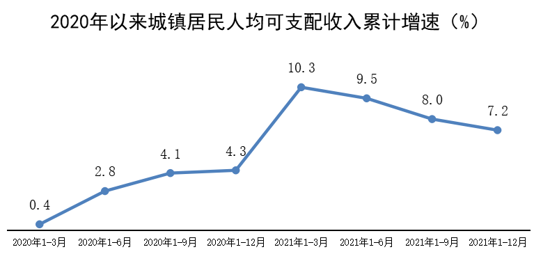 2021年,全区城镇居民人均可支配收入53643元,同比名义增长7.2%,比上年回升2.9个百分点;两年平均增长5.7%,低于2019年增速2.4个百分点。