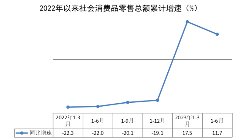 上半年,全区社会消费品零售总额263.23亿元,同比增长11.7%,比一季度回落5.8个百分点。其中,限额以上单位消费品零售额109.82亿元,同比增长11.5%,比一季度回落16.1个百分点。按消费形态分,商品零售同比增长8.4%,餐饮收入同比增长39.5%。