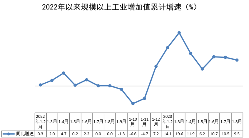 1-8月,全区规模以上工业增加值同比增长9.5%,比1-7月回落1.0个百分点。