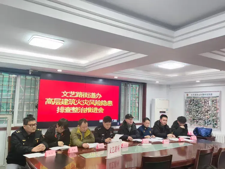 1月29日,文艺路街道联合区应急管理局、区消防救援大队、区住建局、文艺路派出所召开高层建筑火灾风险隐患排查整治推进会。相关部门、街道分管领导、安消办、社区建设科、综合行政执法队、社区民警、各社区安全生产专干、辖区相关高层建筑物业服务企业、产权单位及使用单位的消防安全负责人共50余人参会。