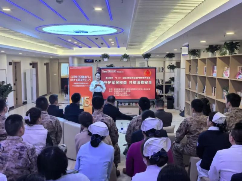 为进一步加强军政军民团结,维护军人合法权益,提高官兵金融知识水平、金融风险意识和自我保护能力,在“3·15”国际消费者权益日到来之际,3月14日,碑林区委退役军人事务和双拥工作领导小组办公室联合光大银行西关正街支行走进空军第九八六医院,开展“守护军民权益,共筑消费安全”金融知识进军营活动,以实际行动书写新时代双拥工作新篇章。区退役军人事务局、空军第九八六医院、光大银行西关正街支行、文艺路街道相关领导出席活动。