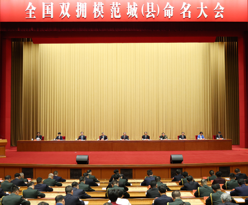 大会宣读了关于命名全国双拥模范城(县)的决定,并为全国双拥模范城(县)代表颁奖。有关军地代表作了发言。