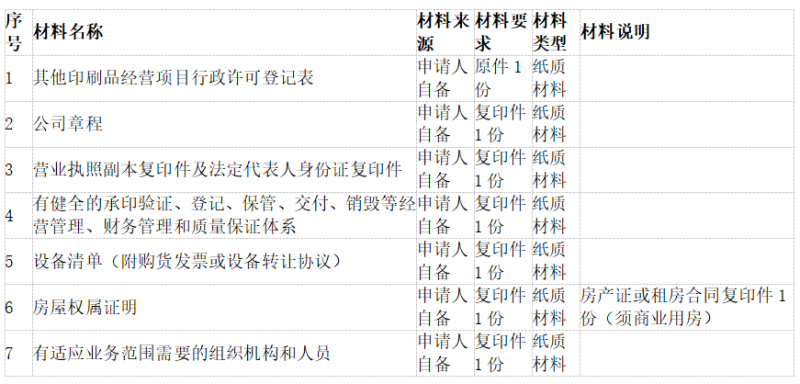 事项:从事其他印刷品印刷经营活动企业的设立、变更。