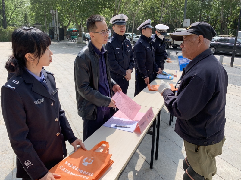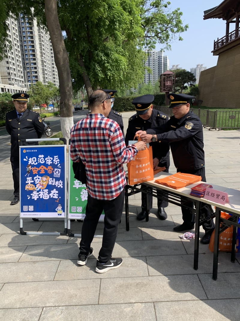 “五一”小长假即将来临,为确保辖区道路交通安全畅通,进一步做好全区道路交通安全和运输执法领域突出问题专项整治工作,4月25日上午,碑林区委依法治区办(区司法局)牵头组织区经济贸易局(区交通运输局)、交警碑林大队在兴庆公园西南角开展道路交通安全和运输执法领域突出问题专项整治集中宣传活动。