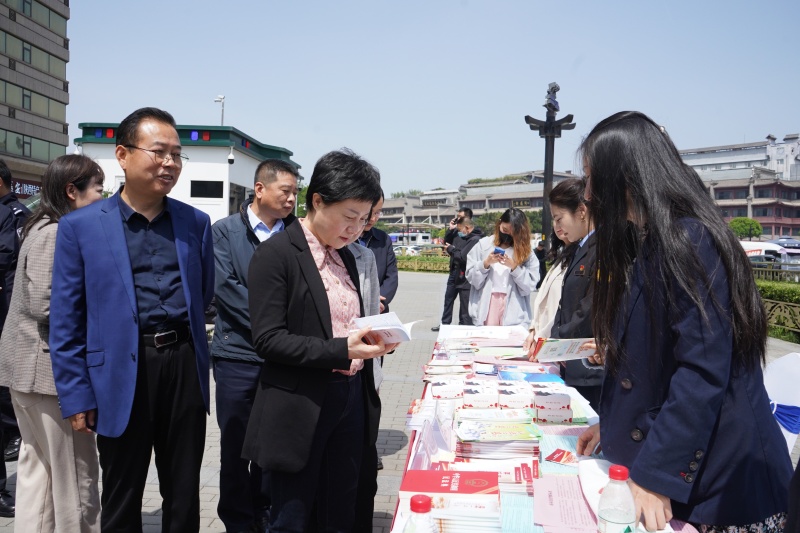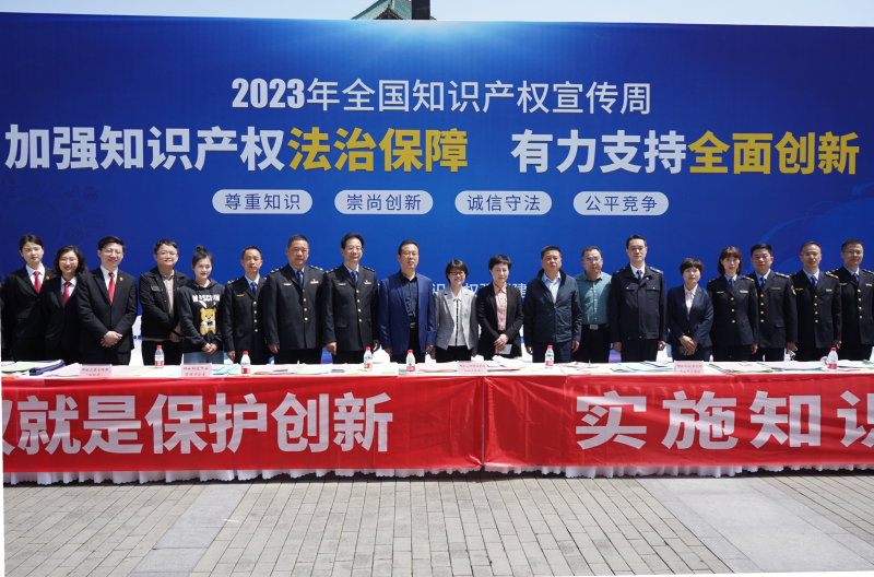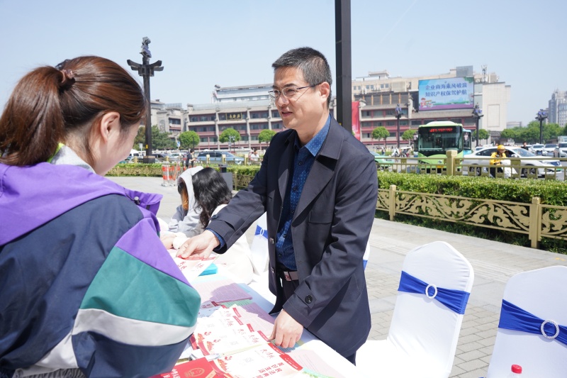 2023年4月26日是第23个“世界知识产权日”,为进一步普及知识产权法律法规,增强全社会知识产权保护意识,4月26日上午,碑林区司法局、区市场监管局联合公安碑林分局、区检察院、区法院、区文化和旅游体育局等单位在钟楼饭店门前广场开展“加强知识产权法治保障,有力支持全面创新”主题宣传活动。区政府区长张帆、副区长张武出席活动,驻足观看展板、认真倾听讲解,对此次宣传活动给予了充分肯定。