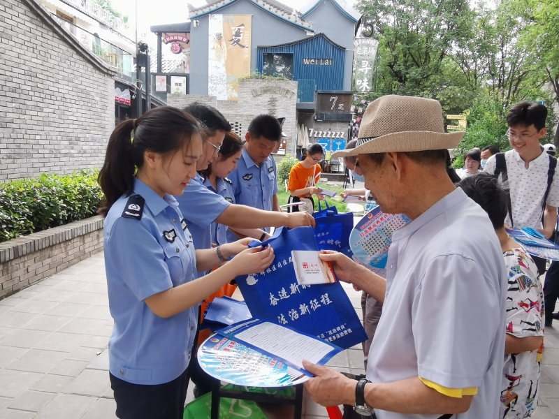 为扎实开展反诈宣传活动,进一步提高辖区群众对电信诈骗犯罪的安全防范意识,营造全民反诈的浓厚氛围,2023年7月6日,碑林区司法局柏树林司法所联合局人民参与和促进法治科、普法与依法治理科、碑林区和平路派出所深入老菜场市井文化创意街区开展主题为“防范电信诈骗,构筑平安碑林”的反诈宣传活动,司警联动反诈骗,共促和谐保平安,让防诈宣教深入人心。