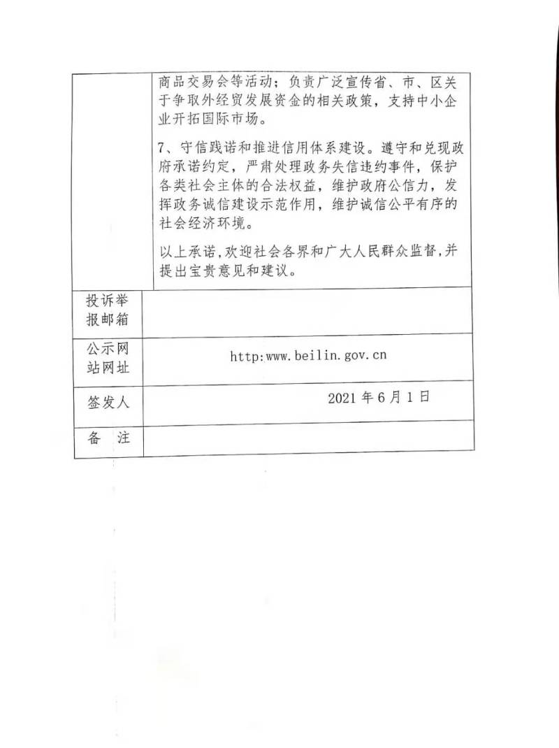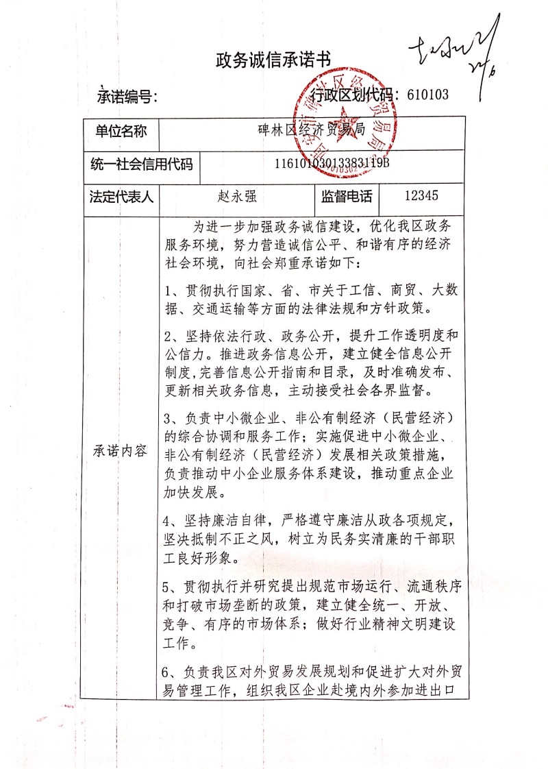碑林区经贸局政务诚信承诺