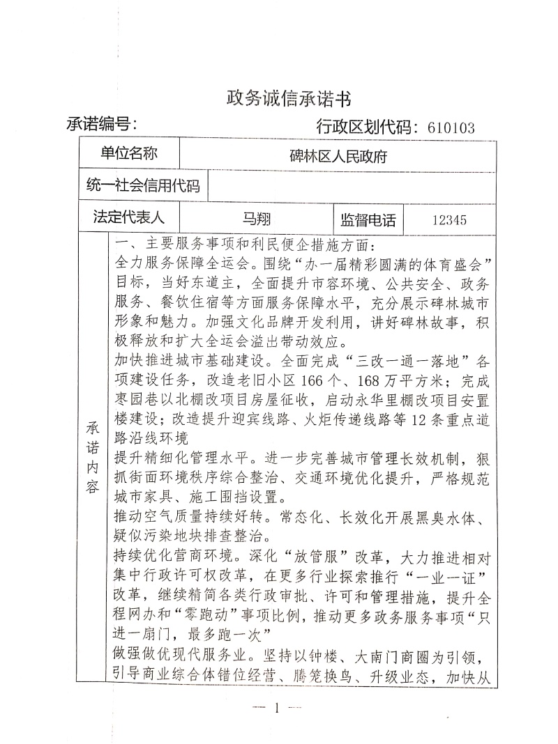 碑林区人民政府政务诚信承诺