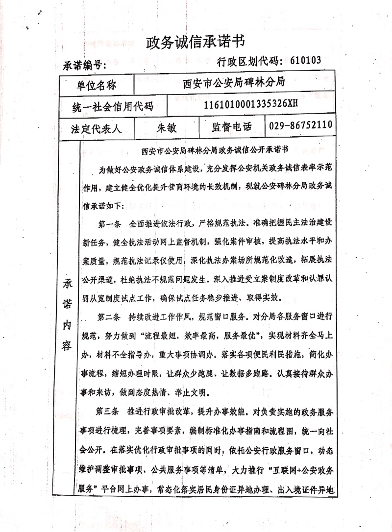 西安市公安局碑林分局政务诚信承诺