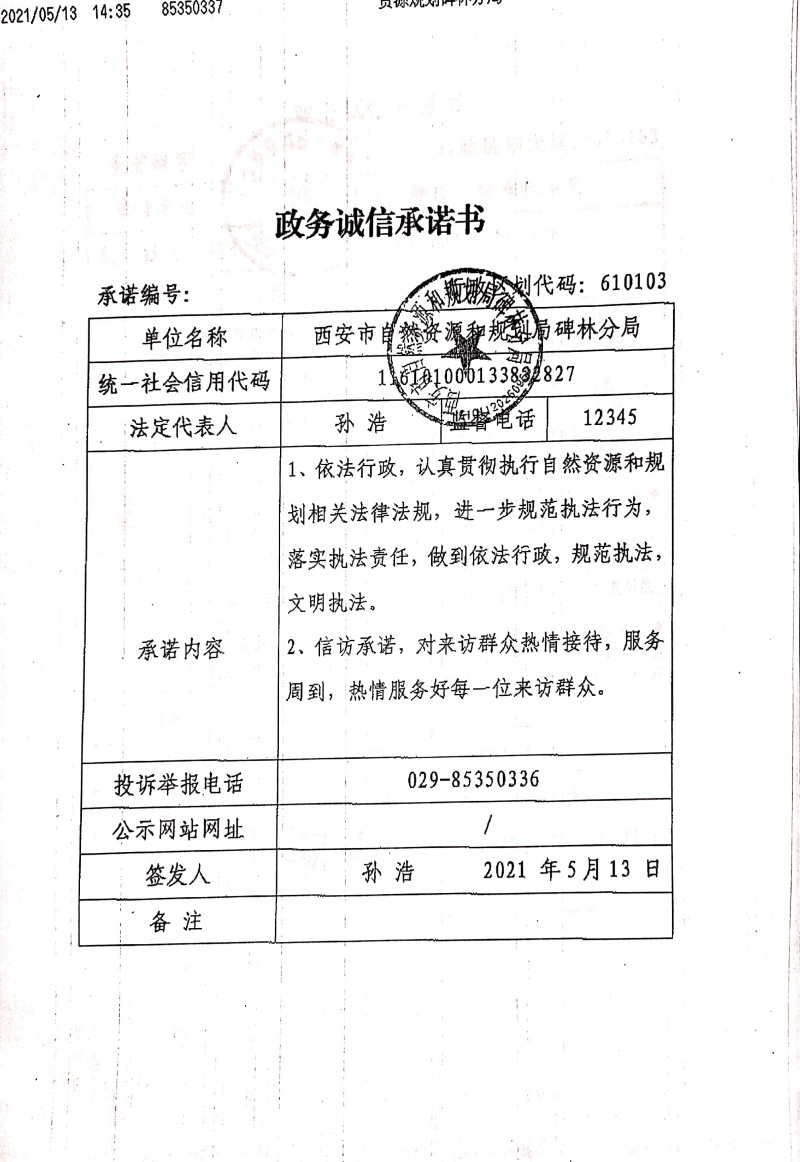 西安市自然资源和规划局碑林分局政务诚信承诺