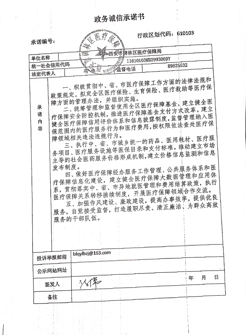 碑林区医疗保障局政务诚信承诺