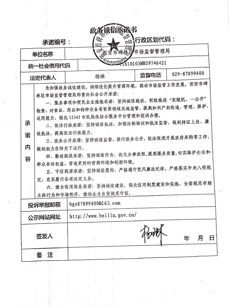 碑林区市场监督管理局政务诚信承诺