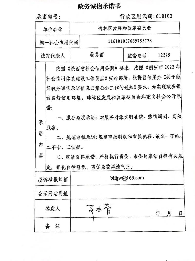 碑林区发展和改革委员会政务诚信承诺