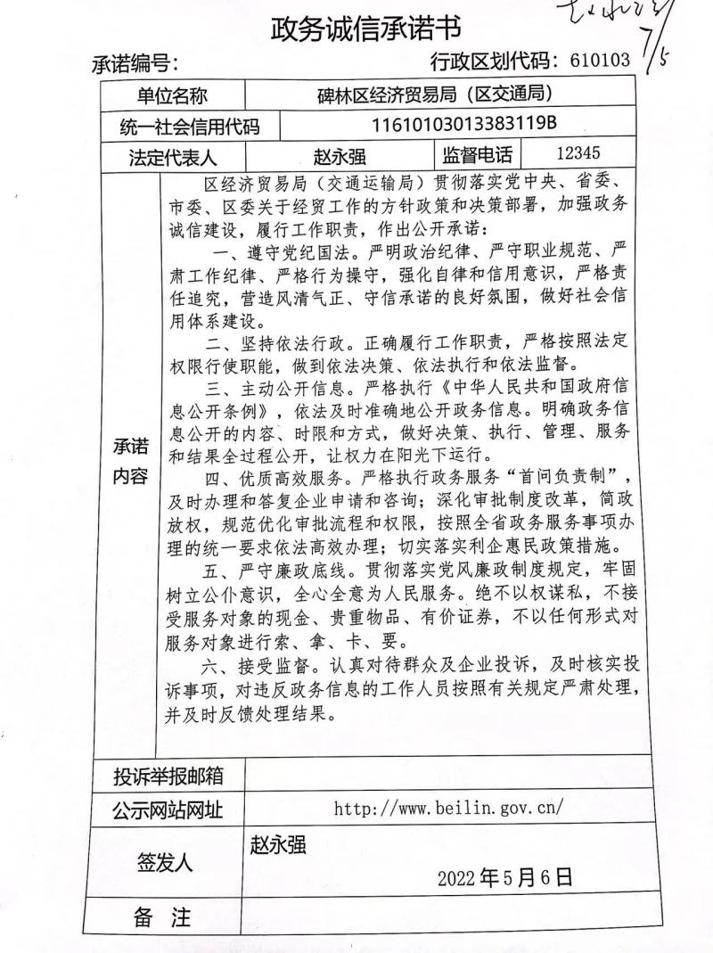 碑林区经济贸易局政务诚信承诺