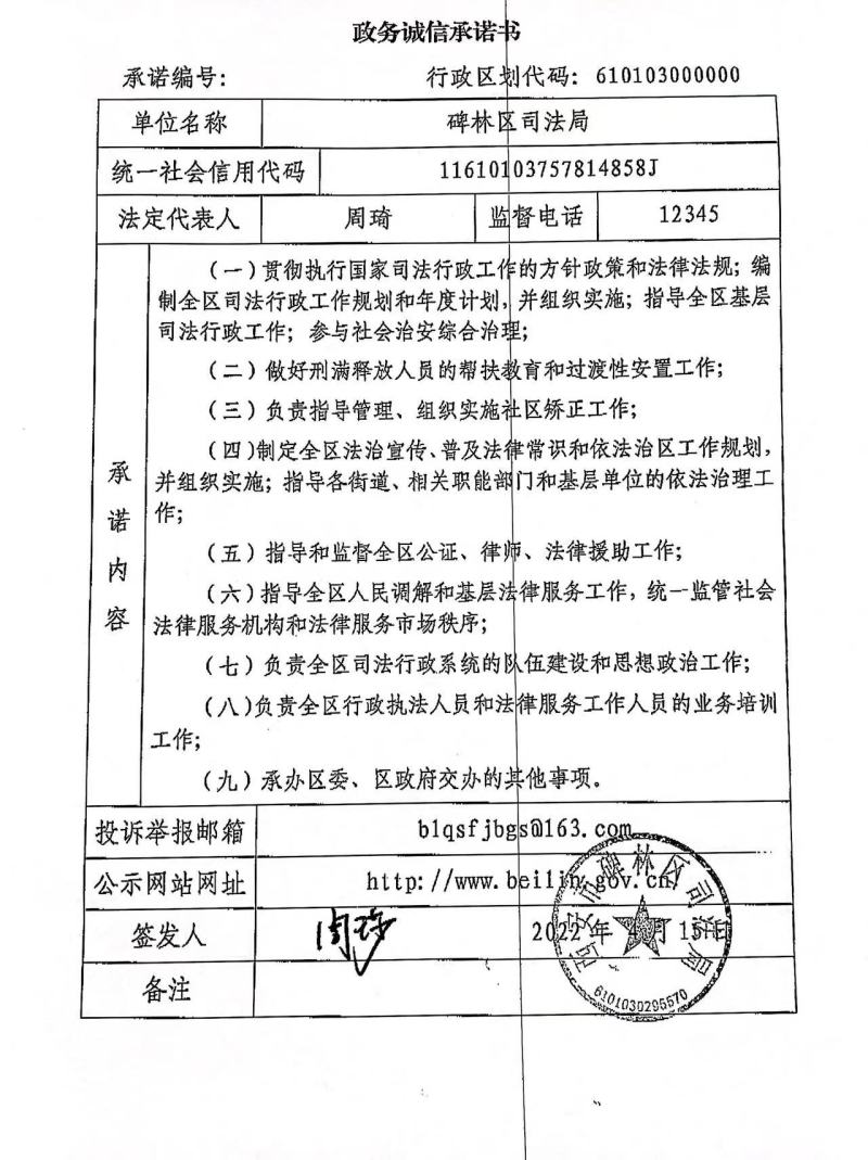 碑林区司法局政务诚信承诺