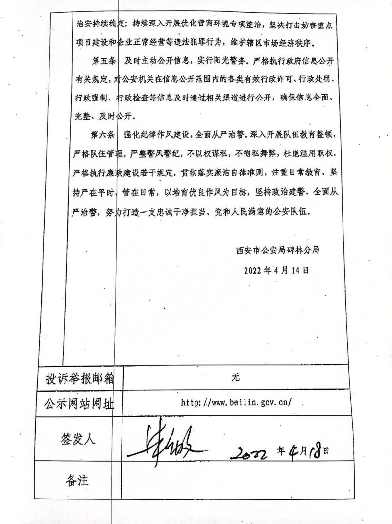 公安碑林分局政务诚信承诺