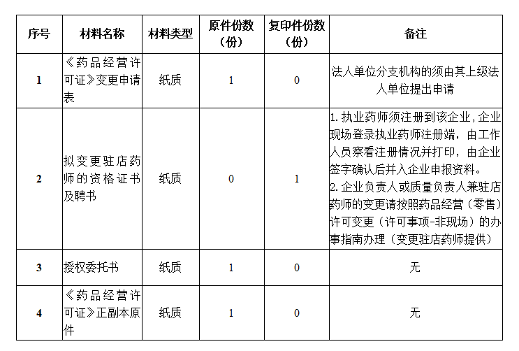 一、事项名称:药品经营(零售)许可变更(登记事项)