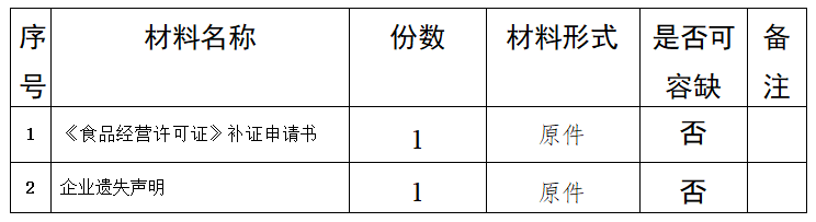 一、事项名称:食品经营许可补办