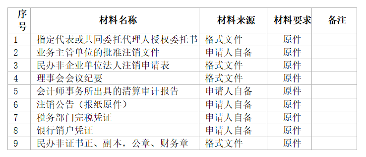 事项:民办非企业单位的注销登记。