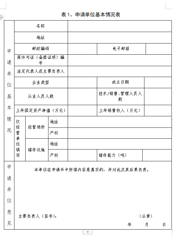 表1申请单位基本情况表