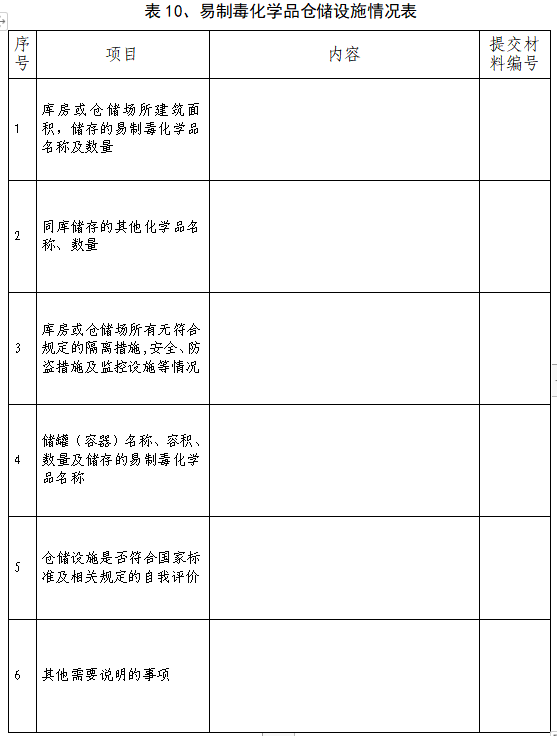 表10易制毒化学品仓储设施情况表