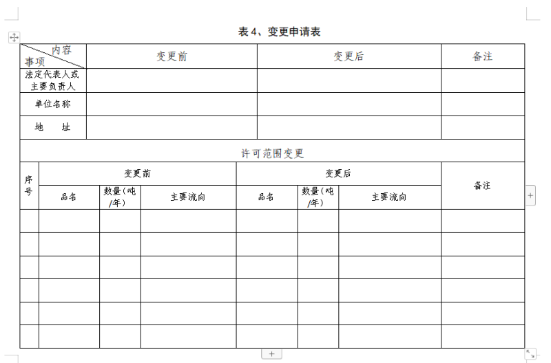 (四)表4、变更申请表