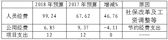 2018年本部门机关运行经费财政拨款预算6.85万元,比2017年预算减少2.52万元,下降4.11%,原因是节约经费支出。