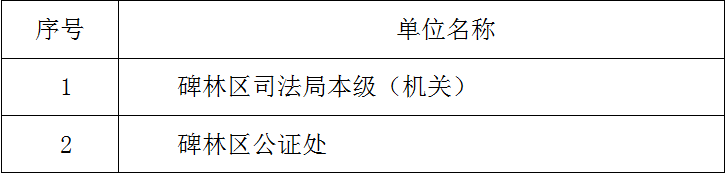 碑林区公证处为司法局二级单位,机构内设办公室、财务室、公证室等部门。