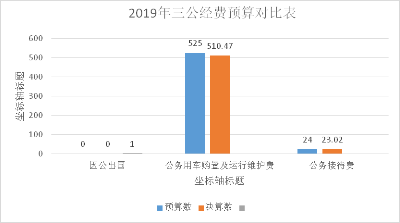 2019年“三公”经费财政拨款支出决算中,因公出国(境)费支出决算0万元;公务用车购置费支出75.56万元,占14.2%;公务用车运行维护费支出决算434.91万元,占81.5%;公务接待费支出决算23.02万元,占4.3%。具体情况如下: