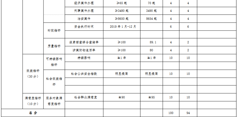 公安碑林分局项目绩效自评综述:根据年初设定的绩效目标,项目自评得分94分。项目全年预算数723.6万元,执行数595.28万元,完成预算的82.2%。主要产出和效果:办案经费主要用于保障基层单位办案支出,提高办案效率和办案水平,提高预防犯罪侦破案件的能力,办理涉黑案件和其他刑事、治安案件,有力打击各种犯罪。分局通过对重点项目进行绩效评价和部门财会相关事项的重点检查,有序推进了分局绩效管理工作,提高了分局财会人员遵纪守法意识和财政资金使用效益。今后努力方向:通过加大对分局办案经费力度,促进分局提高办案水平,提高案件办结率,减少人民群众财产损失,确保碑林辖区人民群众安居乐业。下一步绩效工作改进措施:进一步加强预算绩效管理相关政策宣传,努力提高基层单位对绩效思想认识,指导培训基层单位绩效考评业务知识和实操水平,把有限资金用在关键地方,充分发挥经费效能,分局整体绩效管理取得好成绩,带动分局全面完成各项公安工作,为碑林区建设作出积极贡献。