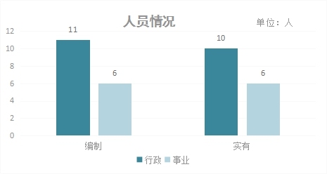 截止2019年底,本部门人员编制17人,其中行政编制11人、事业编制6人;实有人员16人,其中行政10人、事业6人。单位管理的离退休人员13人。