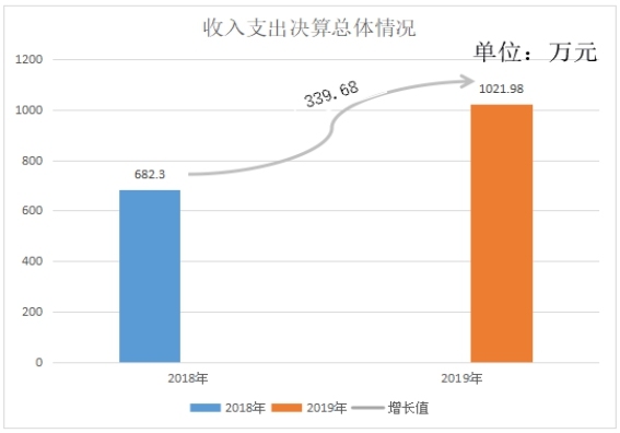 年本年收入为1021.98万元,较上年增加339.68万元,增长49.78%,主要原因是由于机构改革,单位职责增加,人员经费增加,机关事业基本养老及社保费增加、目标奖金增加,新办公用房租赁费及部分装修款。