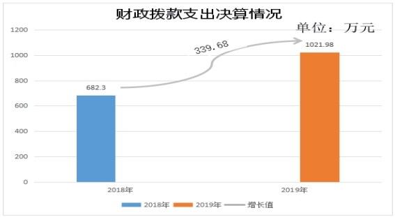 2019 年财政拨款支出1021.98万元,占本年支出合计的100%。与上年相比,财政拨款支出增加339.68万元,增长49.78%,主要原因是由于机构改革,单位合并,职责增加,人员经费增加,机关事业基本养老及社保费增加、目标奖金增加,新办公用房租赁费及部分装修款。