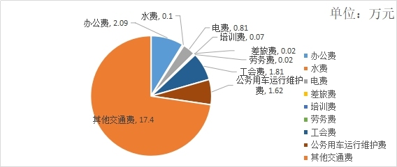 公用经费23.94万元,主要包括(单位支出涉及的款级科目)办公费2.09万元,水费0.10万元,电费0.81万元,差旅费0.02万元,培训费0.07万元,劳务费0.02万元,工会费1.81万元,公务用车运行维护费1.62万元,其他交通费17.40万元。