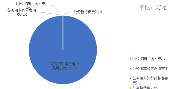 2019年“三公”经费财政拨款支出决算中,因公出国(境)费支出决算0万元,占0%;公务用车购置费支出0万元,占0%;公务用车运行维护费支出决算12.78万元,占100%;公务接待费支出决算0万元,占0%。具体情况如下: