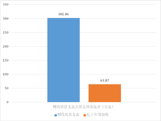 2019年财政拨款支出301.86万元,占本年支出合计的100%。与上年相比,财政拨款支出增加63.87万元,增长26.8%,主要原因是区内人员调动及办公用房租赁。